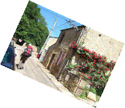 So verlassen wir außerplanmäßig nach etwa 4 Kilometer bei Ahuy etwas genervt die Landstraße und biegen rechts ab Richtung Hauteville-lès-Dijon. Was für eine Wohltat. Schattenspendendes Grün begleitet uns fast durchweg und wir sind trotz eines permanenten leichten Anstiegs schon nach gut einer dreiviertel Stunde in Hautevile. Wie der Name verrät, befinden wir uns auf einer Anhöhe von etwa 400 Meter (gegenüber 300 Meter in Messigny). Wir haben einen herrlichen Rundumblick. Vor uns die Vororte von Dijon, hinter uns der zurückgelegte Weg. Ein klarer Himmel mit scharfem Horizont sind hervorragende Bedingungen für gute Fotos. Also machen wir vor der „Mairie“ eine kleine Pause und genießen die Aussicht.